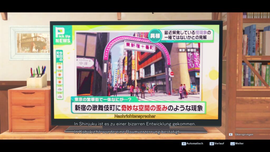 Gerade teilt uns Inori im Wohnzimmer mit, dass sie Frühstück gemacht hat, da wird sie vom Nachrichtensprecher im Fernsehen unterbrochen. Im Kabukicho-Viertel in Shinjuku passieren immer mehr seltsame Dinge. Die Bereitschaftspolizei ist bereits vor Ort. Nachdem wir beschließen, Aegiomon erst einmal nichts zu sagen, geht Inori zu ihm auf den Dachboden.