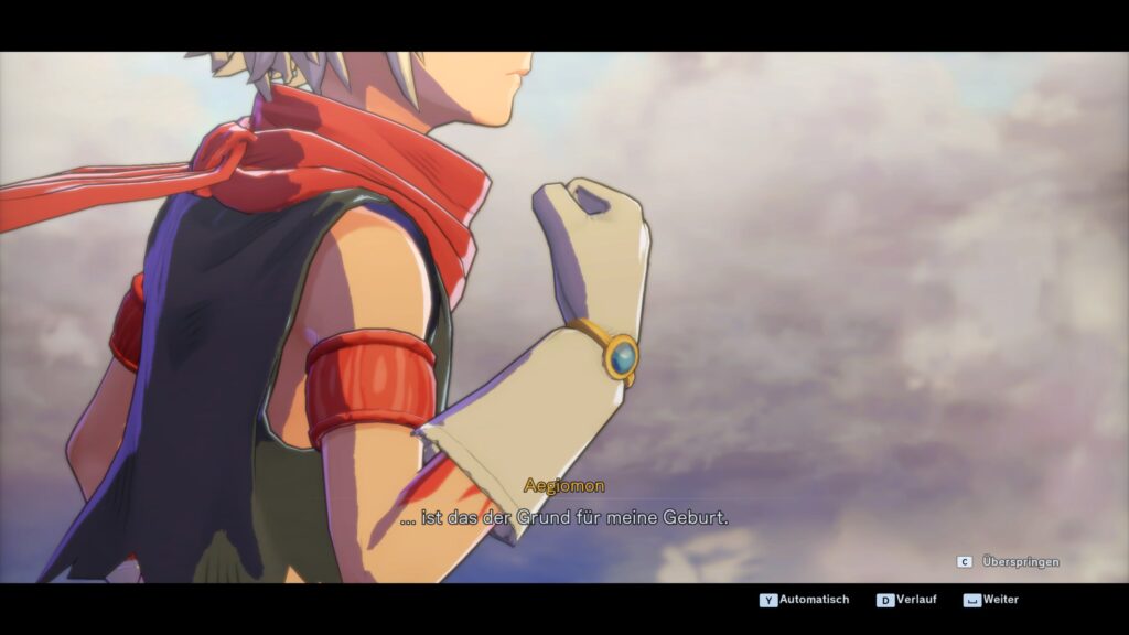 Wir erwachen in einer seltsamen Zwischenebene. Inori und Aegiomon setzen uns ins Bild. Der Orb ist abhandengekommen und die Titaten folgen ihm. Wir müssen ihnen folgen, doch zuvor möchte Inori noch einmal wissen, ob Aegiomon das wirklich wollte. Sie fühlt sich schlecht, ihn zu so einer Entscheidung getrieben zu haben. Doch er bestätigt, dass es seine Entscheidung war. Daraufhin digitiert er zu Aegiochusmon und wir landen in der Menschenwelt.
