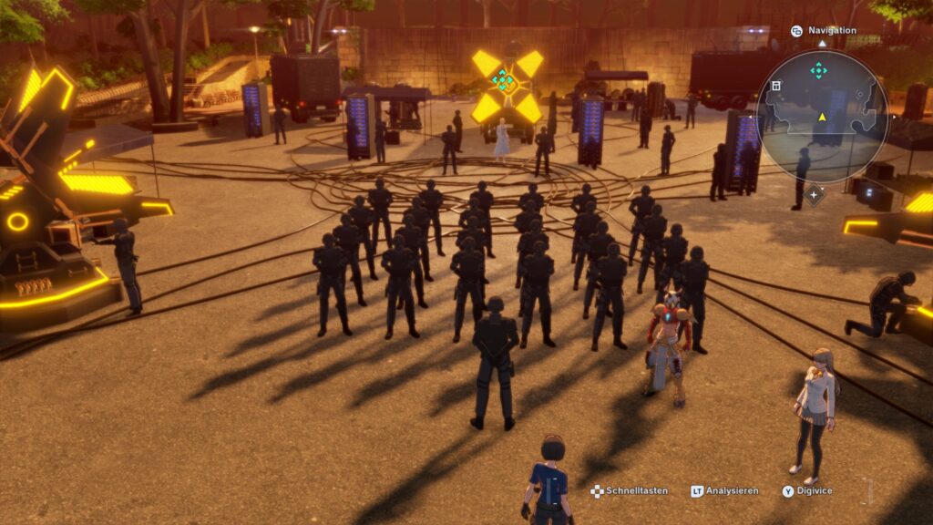 Wir gehen weiter und finden den dritten Generator. Auf dem Weg dorthin entdecken wir einige Digimon, die K.O. gegangen sind und auch die zwei Beamten sind nicht ansprechbar. Der Generator wurde leicht beschädigt. Asuna möchte ihn persönlich reparieren, bittet uns aber, ein spezielles Werkzeug aus der Basis in Higashi-Shinjuku zu holen. Das BlackGatomon bleibt bei ihr.
