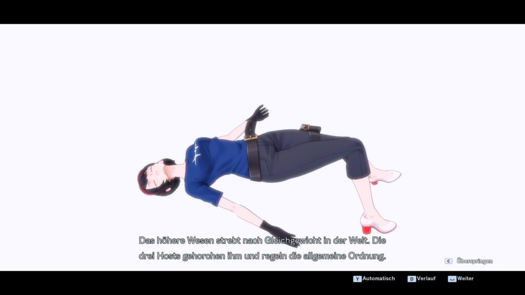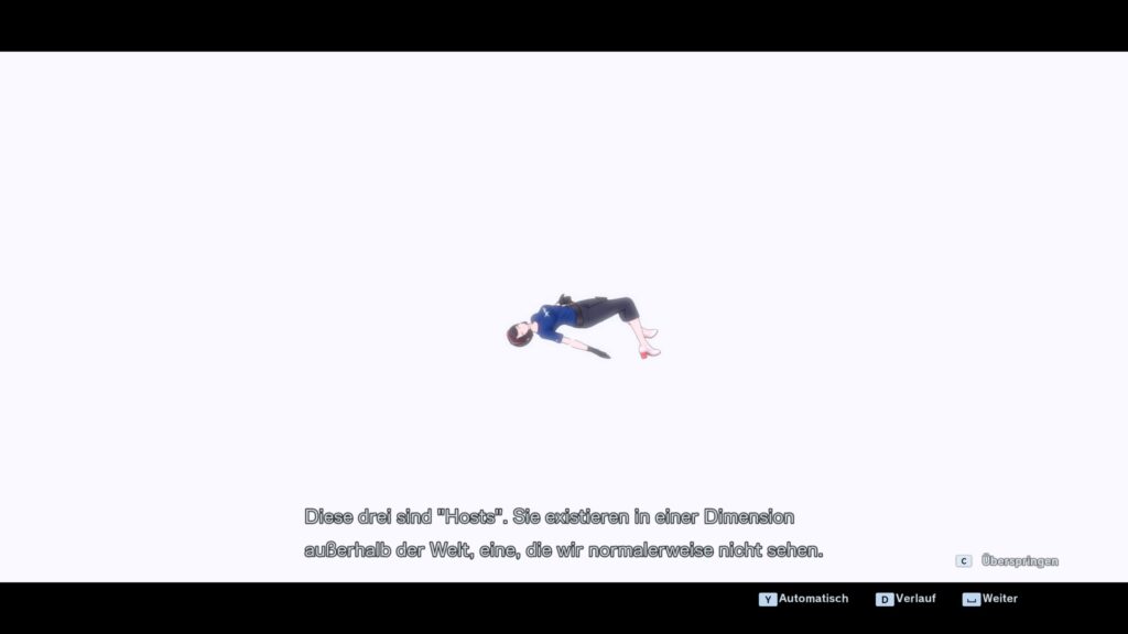 Wieder verschwimmt die Sicht und wir schweben ohnmächtig in einem weißen Licht. Eine Stimme erklärt uns, dass die drei »Hosts« sind, die in einer Dimension existieren, die wir normalerweise nicht sehen. Sie wurden vom höheren Wesen erschaffen und ihre Gestalten dienen lediglich zur Interaktion. Sie haben uns wohl schon länger beobachtet und geben uns ein Roter-Drachen-Datenfragment – zumindest sagt uns die Stimme, dass sie es uns im Namen der Hosts geben soll. Mehr erfahren wir allerdings nicht. Auch nicht, wie wir dorthin gekommen sind oder wer bzw. was das höhere Wesen ist. Selbst die Stimme offenbart sich uns nicht, so schweben wir einfach dort und wir landen an einem anderen Ort.